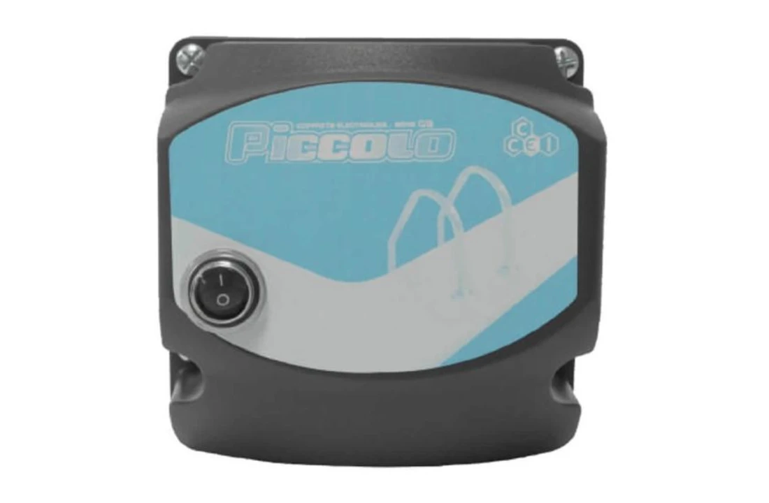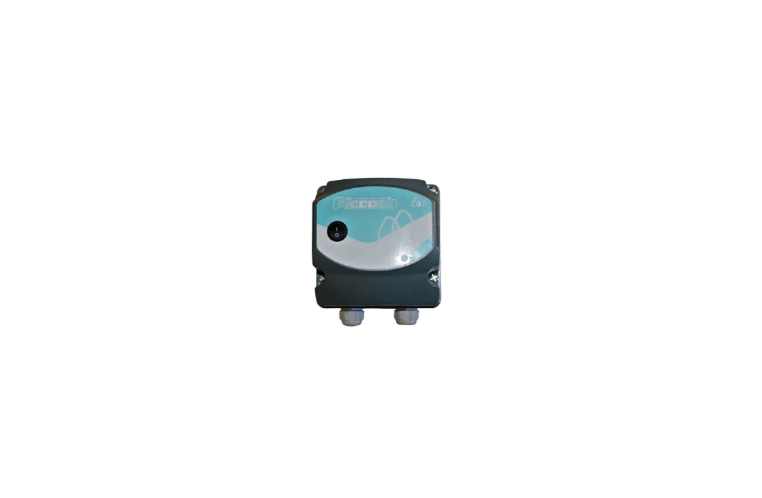 Veiligheidstransformator in kunststof behuizing. De transformator zet de gewone 230 Volt om naar 12 Volt en heeft twee aansluitingspunten.
