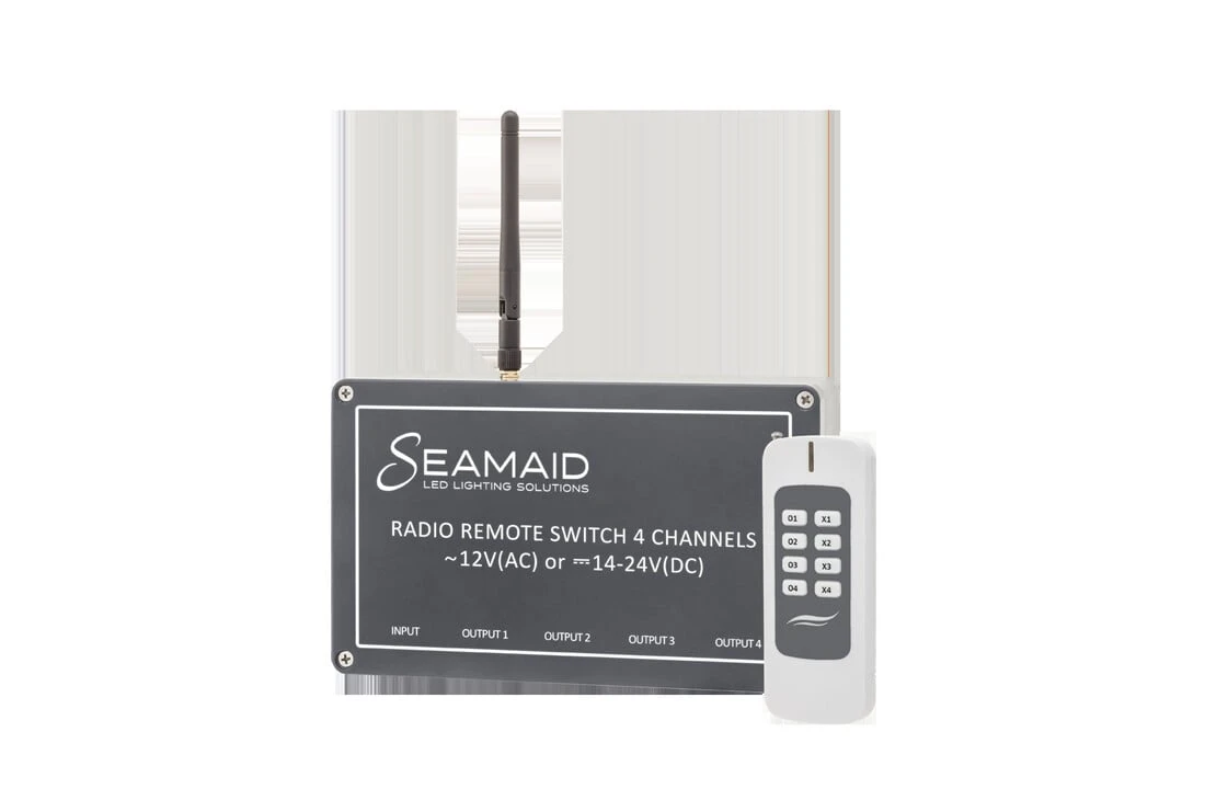 Deze draadloze ontvanger van Seamaid zorgt voor een gemakkelijke bediening van je ingebouwde zwembadverlichting. Deze op afstand bestuurbare schakelaar met afstandsbediening kan je zowel witte als kleuren lampen bedienen. Deze ontvanger is geschikt voor een maximum van 12 lampen met een totaal vermogen van maximaal 460 W. De ontvanger heeft 4 ingebouwde kanalen. Hiermee kan je 4 verschillende groepen van lampen maken.