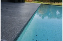 Belgische blauwe hardsteen zwembadranden geeft uw zwembad een luxueuze uitstraling. Te verkrijgen in gezandstraalde en in gebrande afwerking,